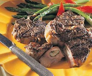 - Poivrer généreusement et badigeonner les côtelettes d'huile d'olive. Les déposer sur la grille du barbecue, puis les griller 6-7 minutes de chaque côté ou plus selon l'épaisseur et la cuisson désirée. Saler au goût après les avoir retournées une première fois. Retirer les côtelettes du gril, puis les servir immédiatement