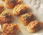- Préchauffer le four à 400 °F (200 °C). Tartiner un côté des tranches de pain de beurre et saupoudrer d'herbes de Provence. Les déposer sur une lèchefrite et les griller 7-10 minutes au four ou jusqu'à ce que les tranches soient légèrement dorées. Retirer du four et laisser refroidir. Mettre le four à la position «broil».