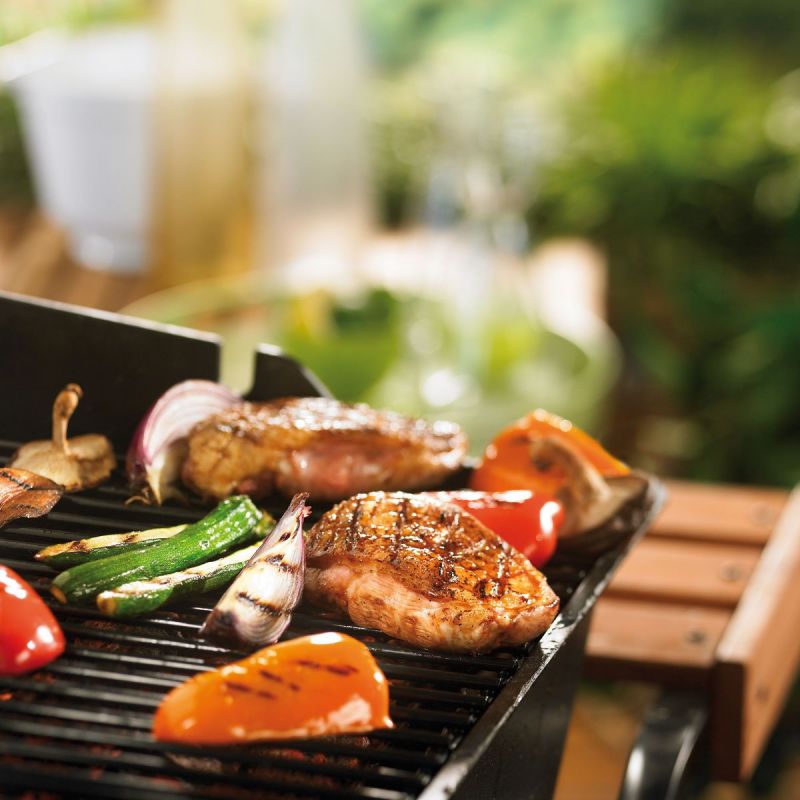 - Terminer la cuisson à feu direct, couvercle ouvert, côté chair sur la grille, pendant 2 à 4 minutes. Saler, poivrer les poitrines et les laisser reposer 5 minutes recouvertesd'une feuille d'aluminium.