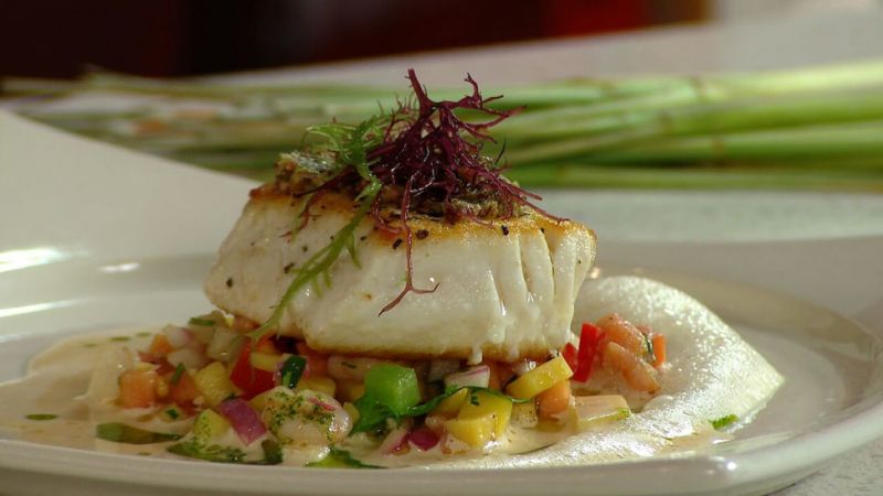 - Poêler à feu vif, assaisonner de sel d'algue. Servir le poisson nappé de sauce et déposé sur une salsa.