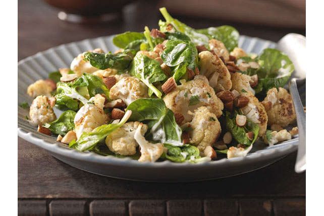 Salade d'épinards et de chou-fleur rôti à l'indiene