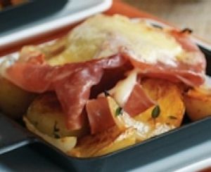 Pommes de terre rissolées au prosciutto, gratinées à la Raclette Fritz