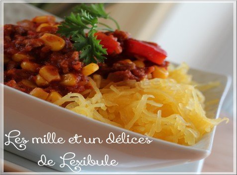 La courge spaghetti est délicieuse en légume d'accompagnement ou servie comme pâtes avec votre sauce préférée. Ça change des pâtes traditionnelles et oui oui, c'est beaucoup moins calorique!! C'est une délicieuse façon de la consommer avec un bon chili et autant les petits que les plus grands en raffoleront!! Une recette fort simple à préparer, colorée et combien savoureuse pour les soirs de semaine un peu plus pressés!!