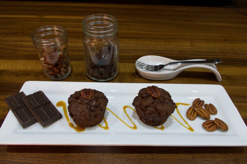 - Remplir les moules au 3/4 et ajoutez une noix de pécan sur le dessus pour la décoration.