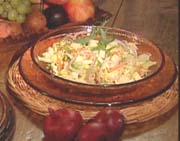 - Dans un saladier, mettre le chou, la pomme, le céleri, l'oignon, la carotte, le carvi et les noix hachées. Mélanger soigneusement cette salade.